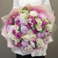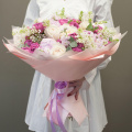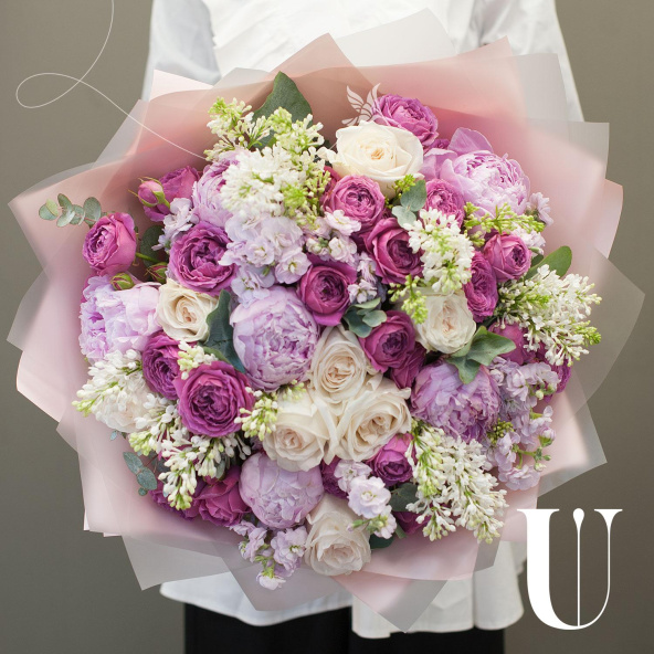 Букет цветов "Королевская аранжерея" - это уникальное сочетание пионовидных роз, пионов, сирени и других цветов и зелени. Этот сборный букет станет отличным подарком для любого случая, будь то деловая встреча, романтическое свидание или просто знак внимания для близкого человека.
