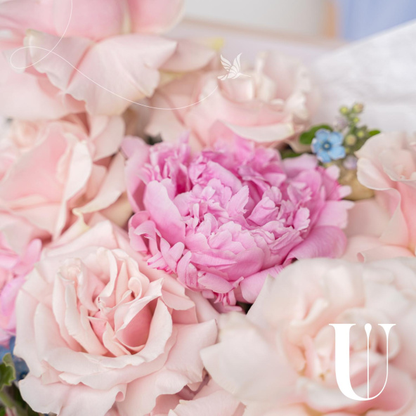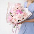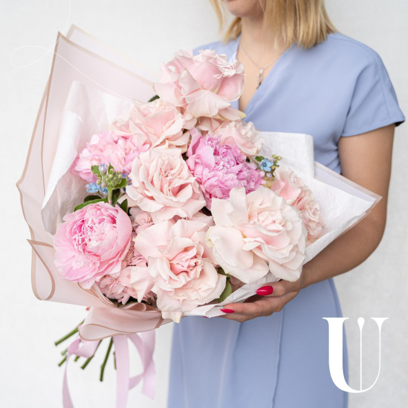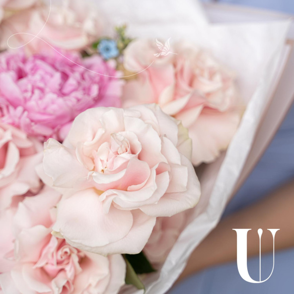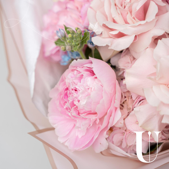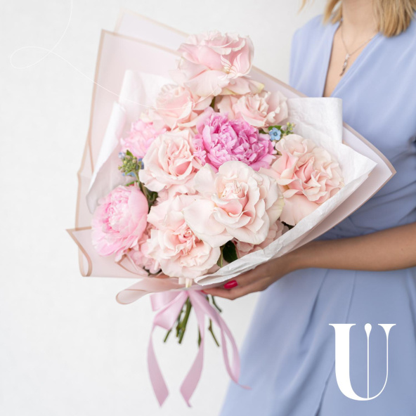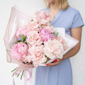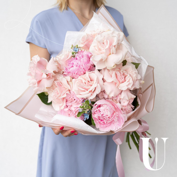 Букет в нежных тонах в дизайнерской упаковке