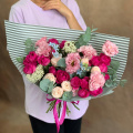 - Роза кустовая пионовидная, Бомбастик, нежно-розовая, 50 см. - 3 шт