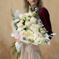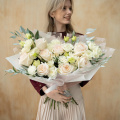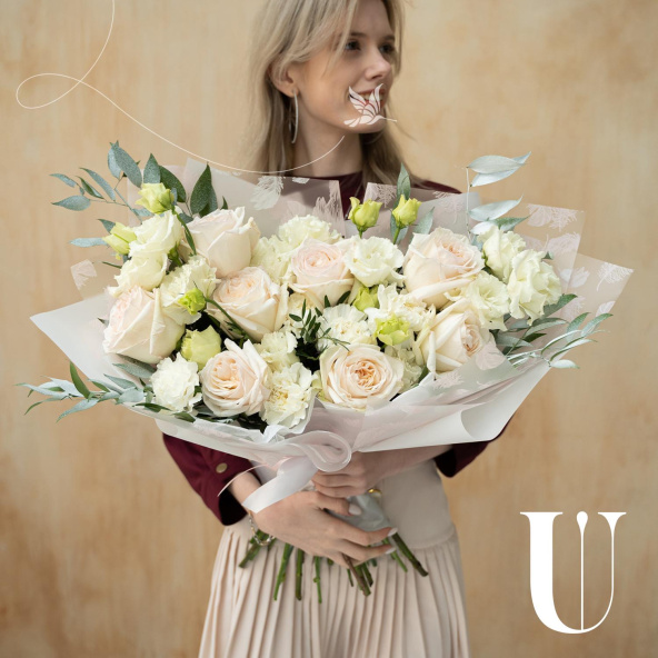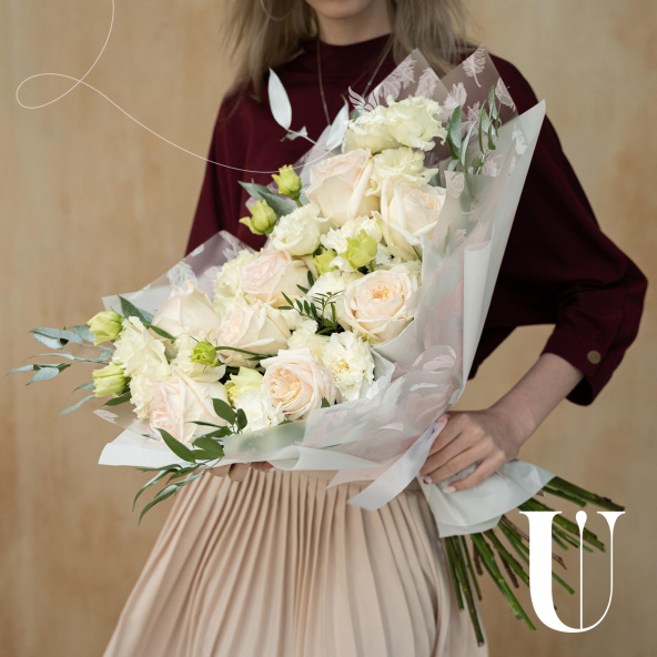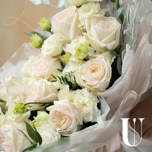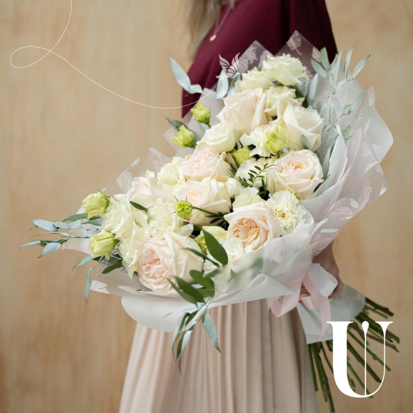 - Роза Вайт Охара, Эквадор, бело-розовая, пионовидная 50 см. - 9 шт