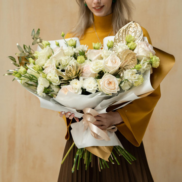 - Роза Вайт Охара, Эквадор, бело-розовая, пионовидная 50 см. - 9 шт