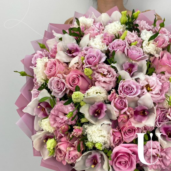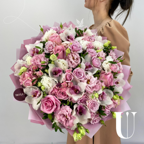 - Орхидея цимбидиум, бело-розовый - 15 шт