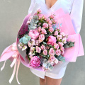 Авторский букет из роз, диантусов, альстромерий и других цветов