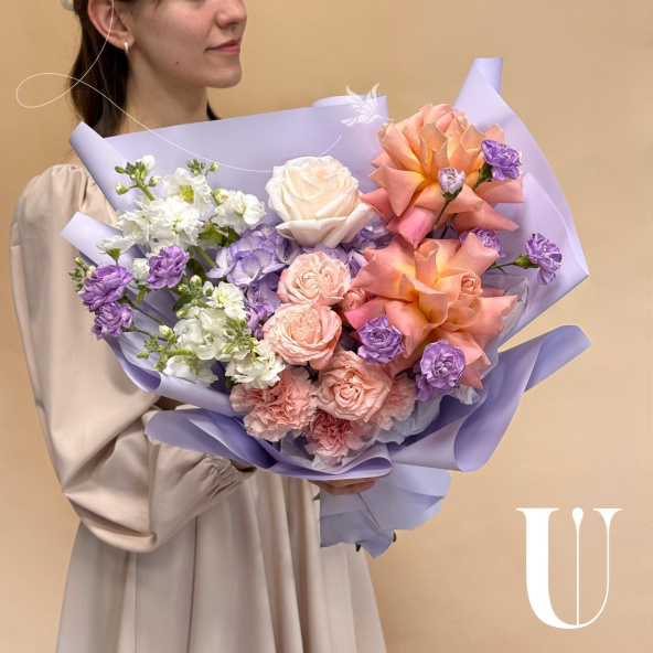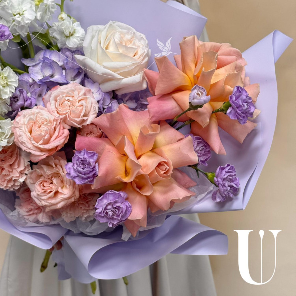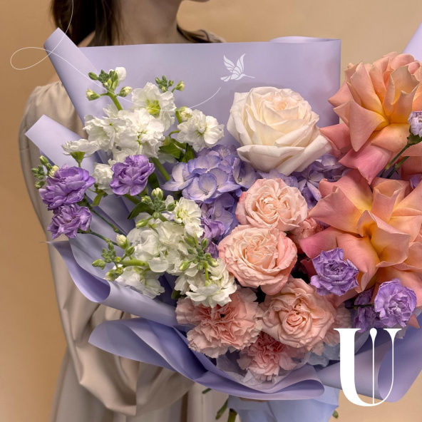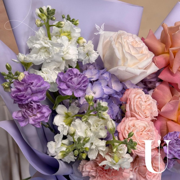 - Роза Вайт Охара, Эквадор, бело-розовая, пионовидная 50 см. - 1 шт