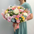 - Роза кустовая пионовидная, Бомбастик, нежно-розовая, 50 см. - 4 шт