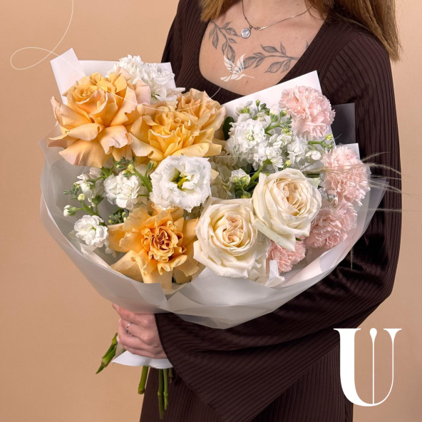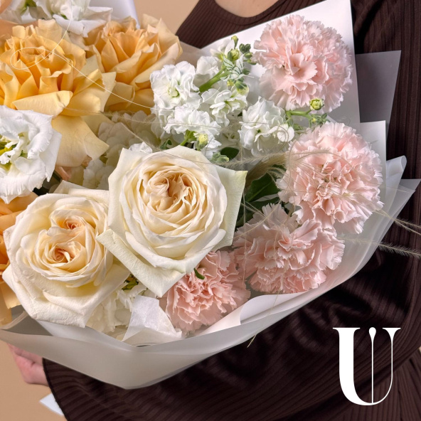 - Роза Вайт Охара, Эквадор, бело-розовая, пионовидная 50 см. - 2 шт