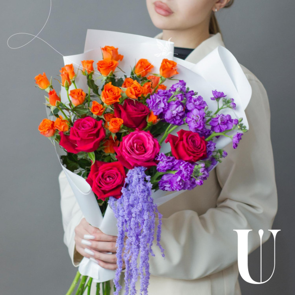 - Роза кустовая, оранжевая, 50 см. - 5 шт