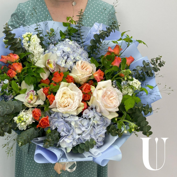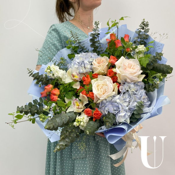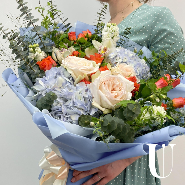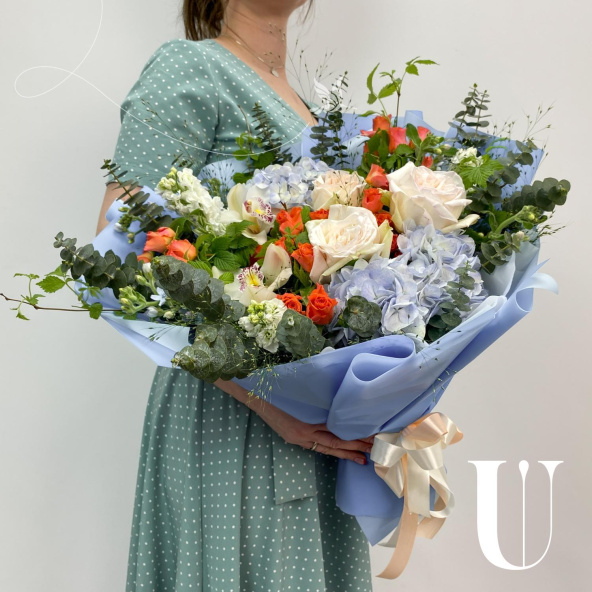 - Роза кустовая, оранжевая, 50 см. - 5 шт