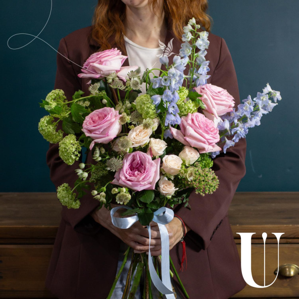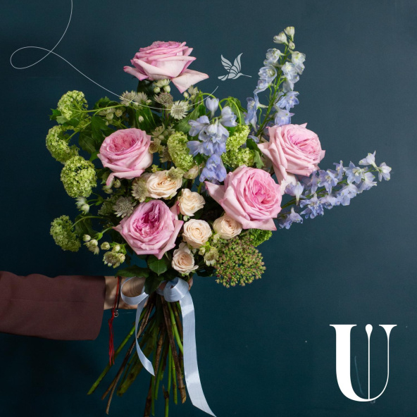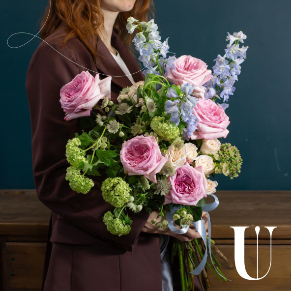 - Роза кустовая пионовидная, Бомбастик, пудровая - 3 шт