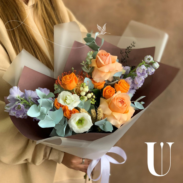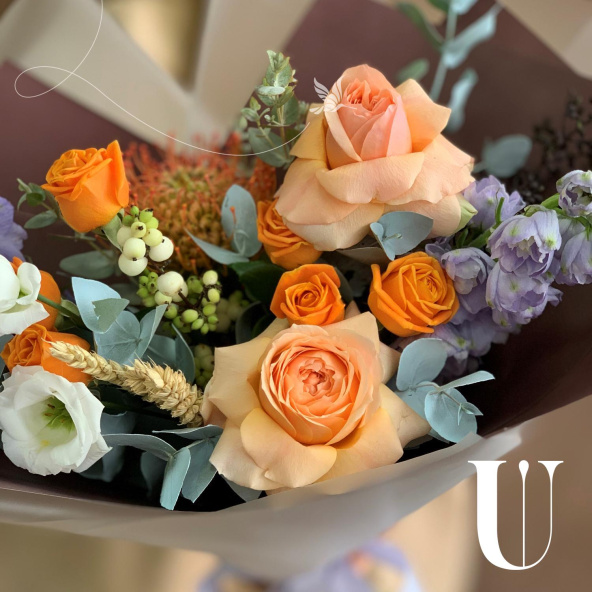 - Роза кустовая, оранжевая, 40 см. - 2 шт