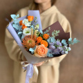 - Роза кустовая, оранжевая, 40 см. - 2 шт