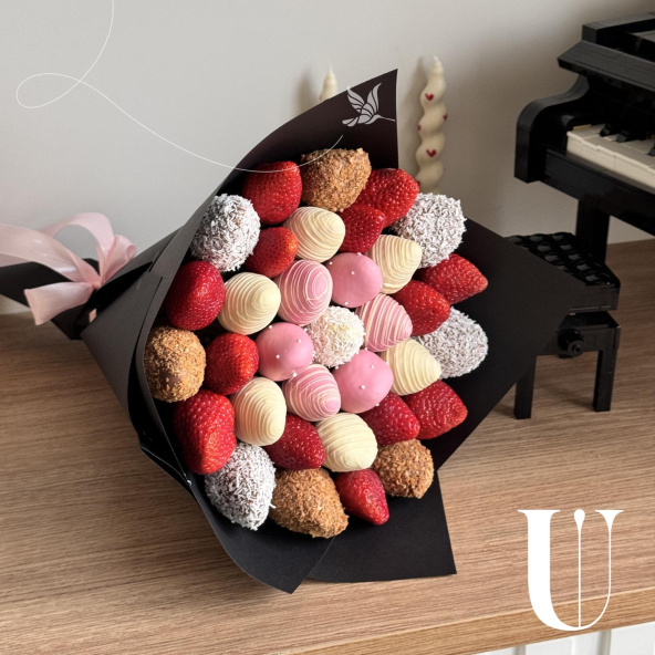Букет из клубники в шоколаде в черной упаковке