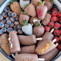 Набор из клубники, малины, голубики и бананов в шоколаде