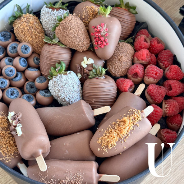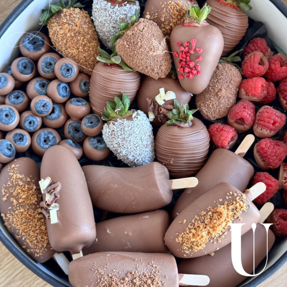 Молочный рай для ценителей истинного наслаждения. Клубника, голубика, малина, бананы в сочетании с бельгийским молочным шоколадом - рай на земле