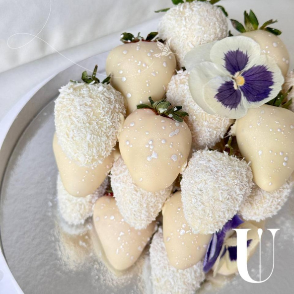 Белый шоколад, кокосовая стружка, мммм РАЙСКОЕ наслаждение. Украшен кондитерскими цветами. Красота и вкус - в одном!