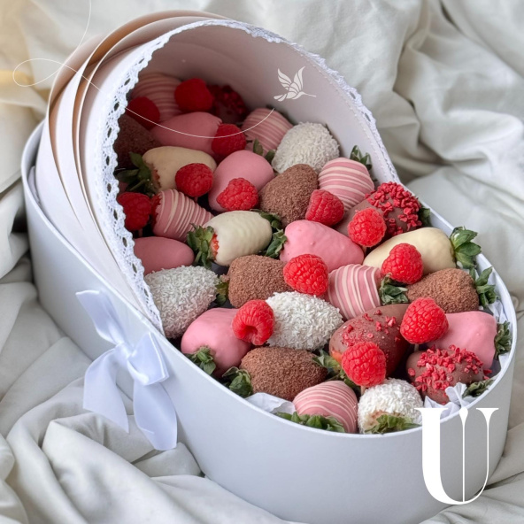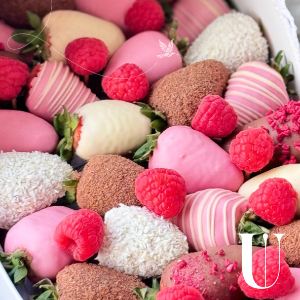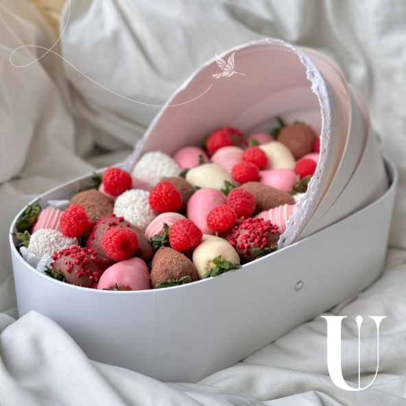 Самая милая композиция. Люлечка с клубникой в шоколаде в розовых тонах. Самая часто заказываемая композиция, чтобы отблагодарить глав врача. Можно сделать в голубом исполнении для мальчика