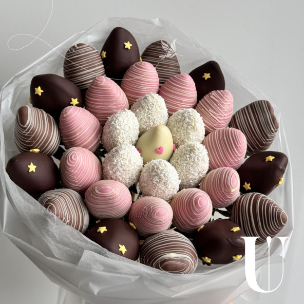 Данный букет так так сдержанно и лаконично собрал в себе аж четыре вида шоколада. Чтобы попробовать всё и сразу очень рекомендуем именно такой дизайн.