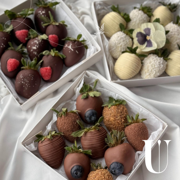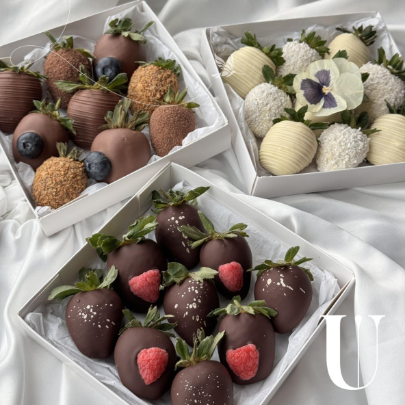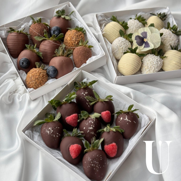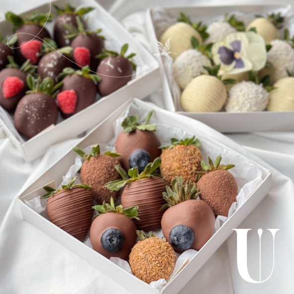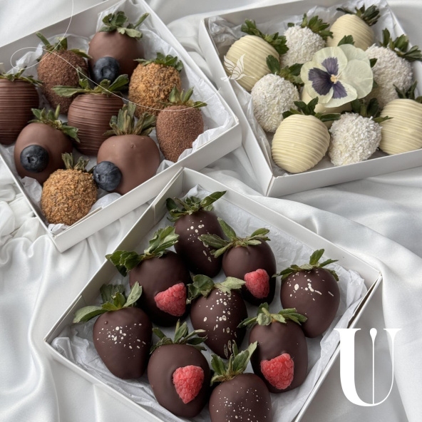 Комбо набор состоит из трёх разных наборов по 9 ягод в шоколаде. Каждая коробочка упаковывается в отдельный пакет. Вы можете попросить менеджера сделать три одинаковые коробки или в трех разных коробках использовать только 1 вид шоколада