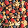 Классика клубники в шоколаде заиграла новыми красками благодаря щедрому украшению из разноцветных ягод и золотистых орехов