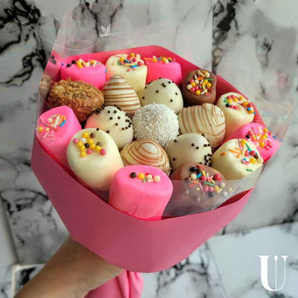 Хотите удивить близких необычным подарком? Попробуйте оригинальный букет из свежей клубники и мягких маршмеллоу, покрытых шоколадом. Такой десерт выглядит аппетитно и необычно, станет отличным дополнением праздничного стола или романтического ужина.