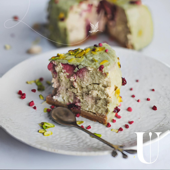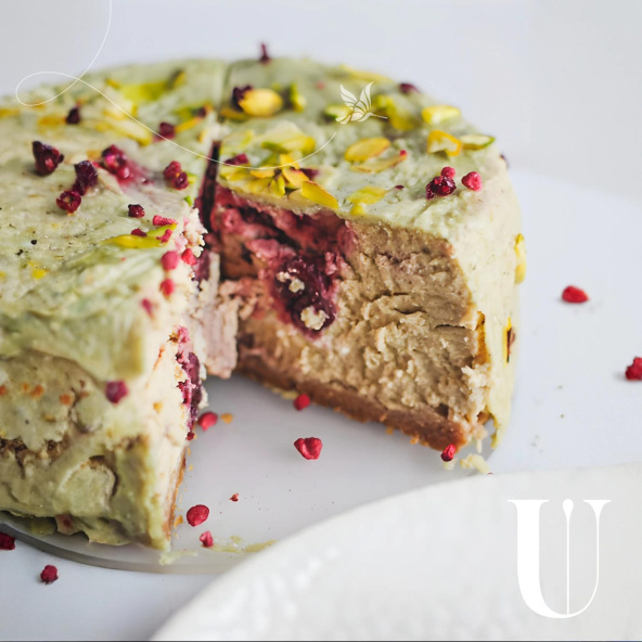 Яркий чизкейк с фисташковой ноткой и вишней