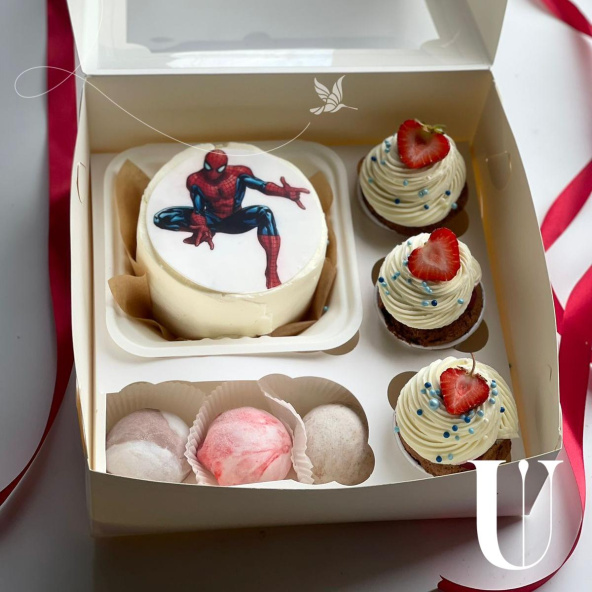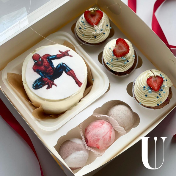 Комбо Бенто-торт Человек паук + Капкейки + Моти