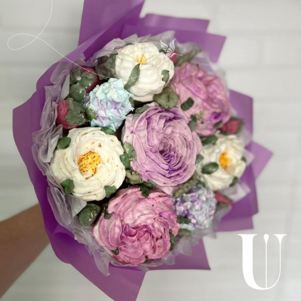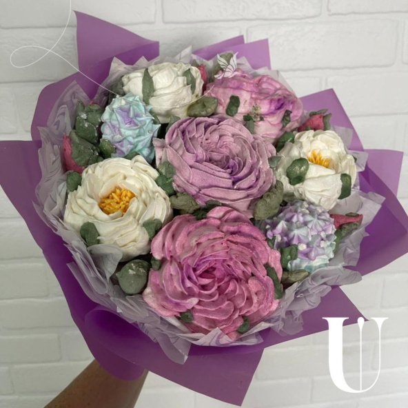 Милый букет из зефирных цветов! Классное универсальное сочетание как по цветам, так и по цветовому сочетанию) понравится вашей получательнице , тем более, что букет можно попробовать! Зефир не сладкий, полностью натуральный!