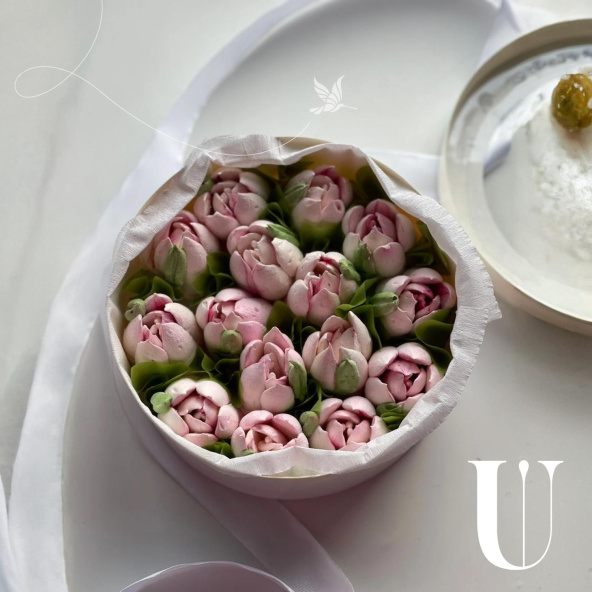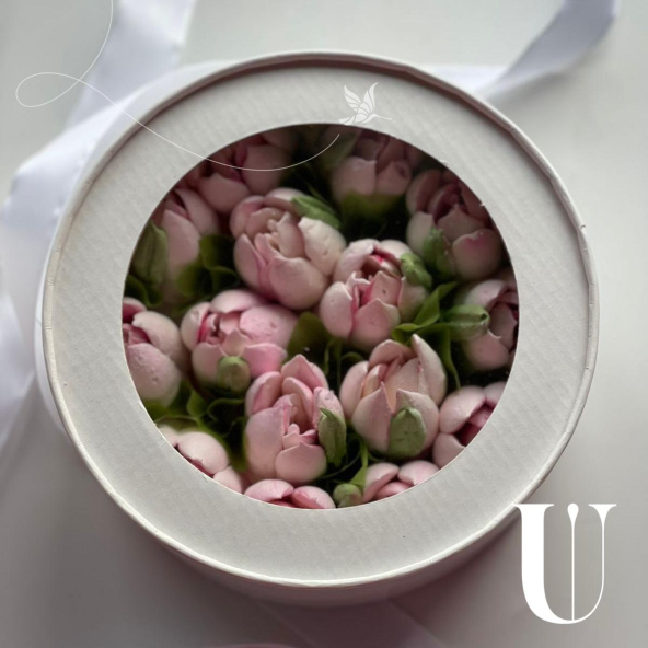 Тюльпаны из зефира в подарочной прозрачной коробке нежно-розовые