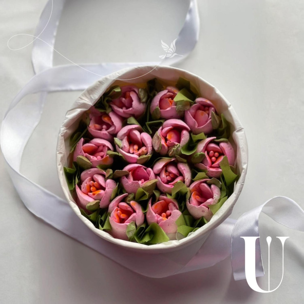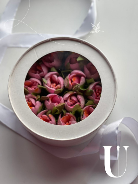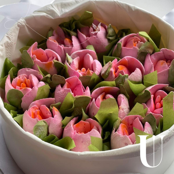 Каждый цветок выполнен вручную из натуральных ингредиентов: ягодного пюре, белка и сахара. Без искусственных красителей и консервантов.