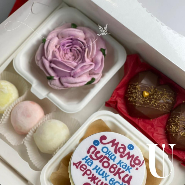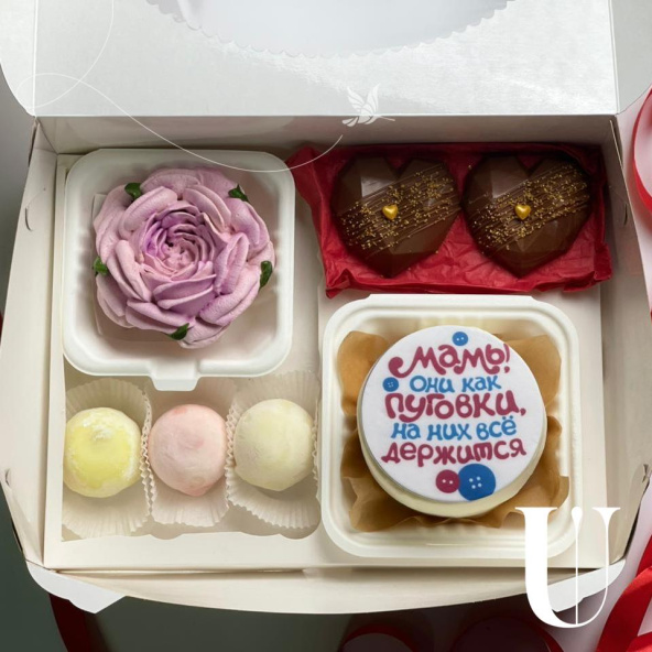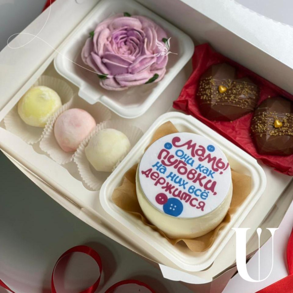 Невероятный нежный и необычный набор для мамы! Пион из зефира, который выглядит супер натурально, пирожные Моти, шоколад с фисташкой и бенто тортик с милой надписью! Такой набор может стать не только классным подарком на праздник, но и просто красивым жестом , чтобы напомнить, как вы любите маму ♥️