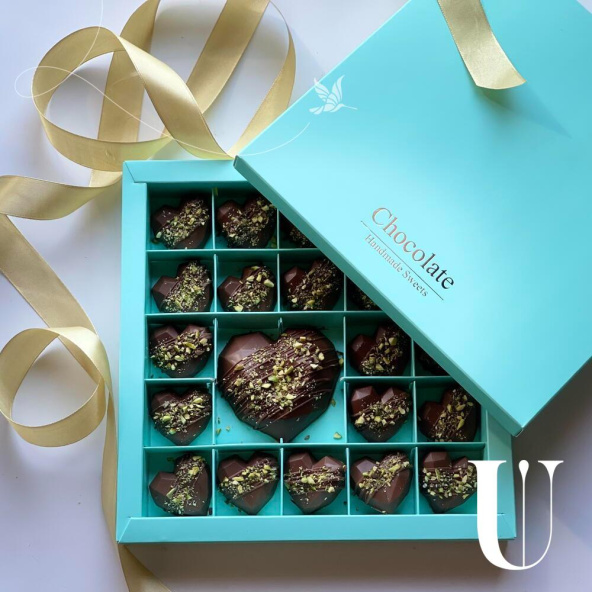 состав: шоколад белый Callebaut 28%, паста фисташковая, малина сублемированная, пишмание со вкусом граната, пишмание со вкусом ванили.