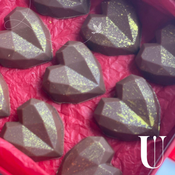 состав: шоколад белый Callebaut 28%,паста фисташковая, малина сублемированная, пишмание со вкусом граната, пишмание со вкусом ванили.