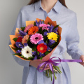 Букет из роз, гербер и альстромерий в рыжем цвете