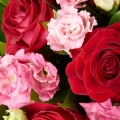 Классический букет из роз, кустовых хризантем и эустомы в упаковке