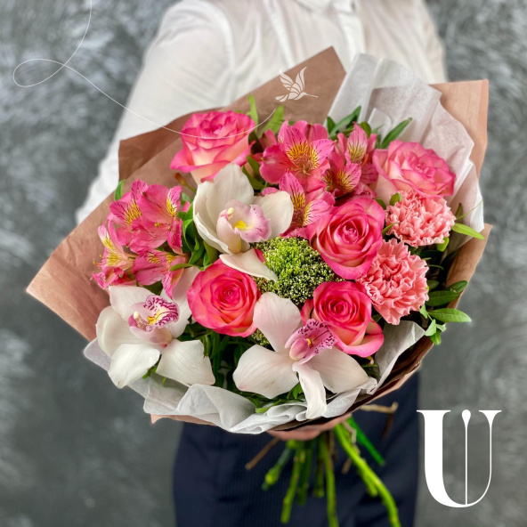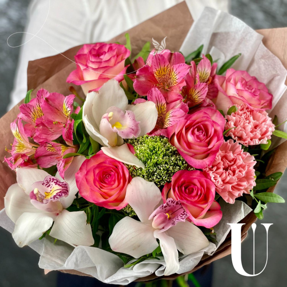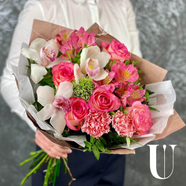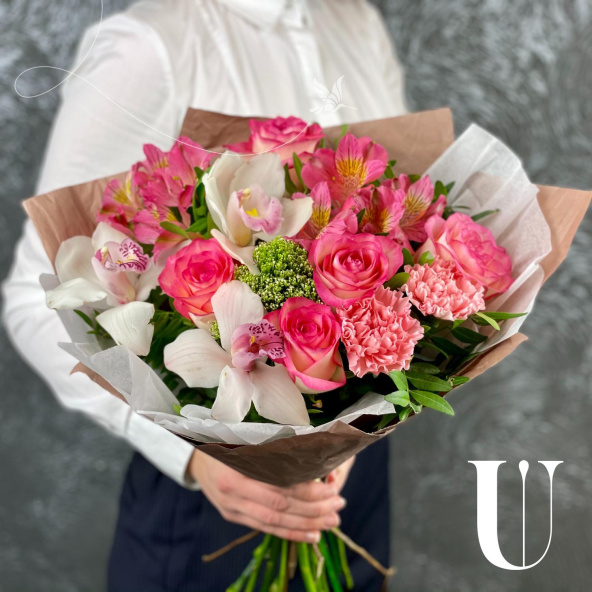 - Орхидея цимбидиум, бело-розовый - 3 шт