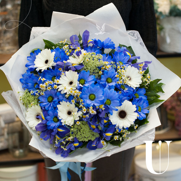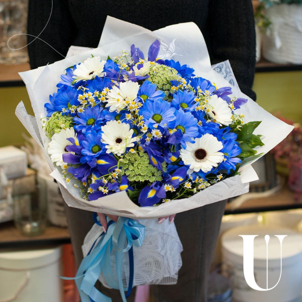 - Синяя крашенная ромашковая хризантема - 5 шт