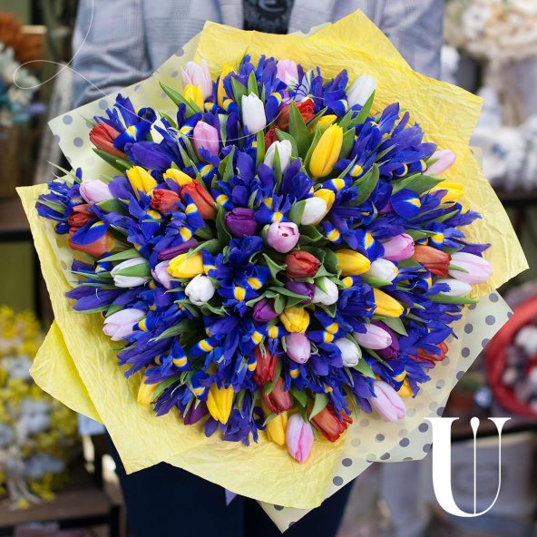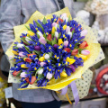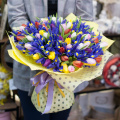 Букет из кустовых пионовидных и кустовых роз микс в упаковке
