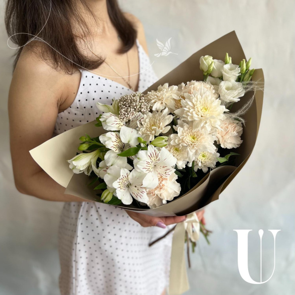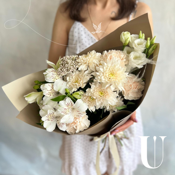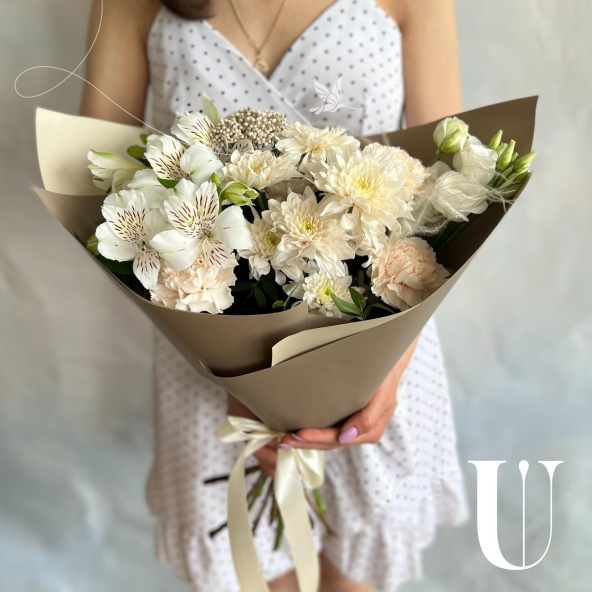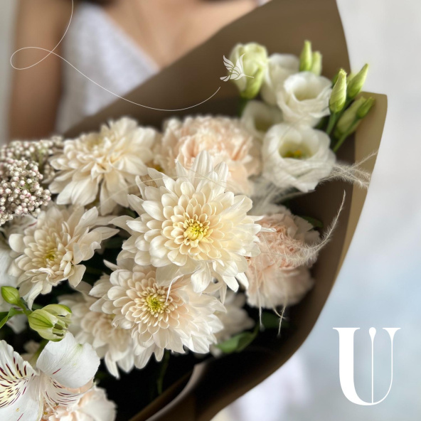 - Хризантема кустовая мини, белая, классика - 1 шт