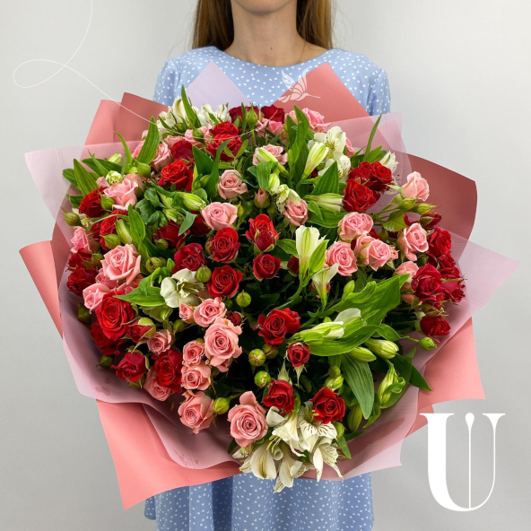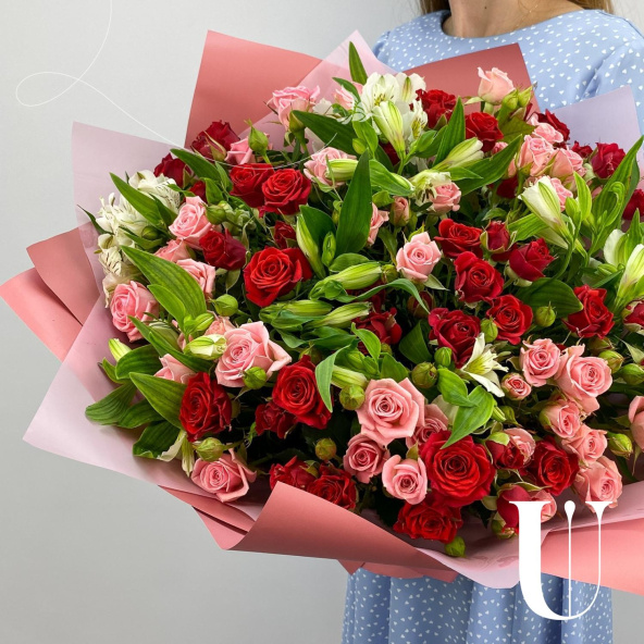- Роза Лидия, кустовая, розовая, 60 см. - 9 шт