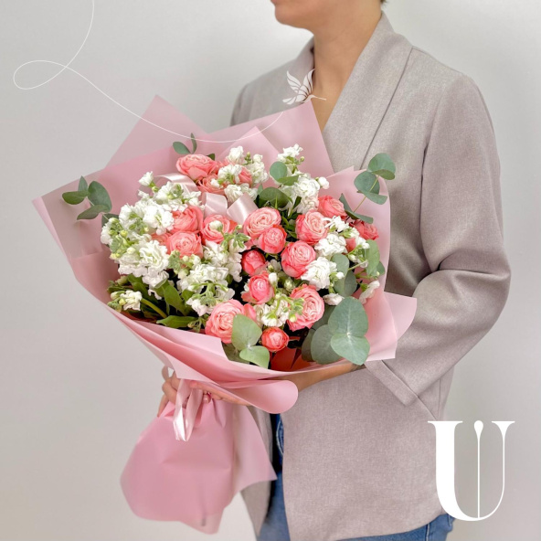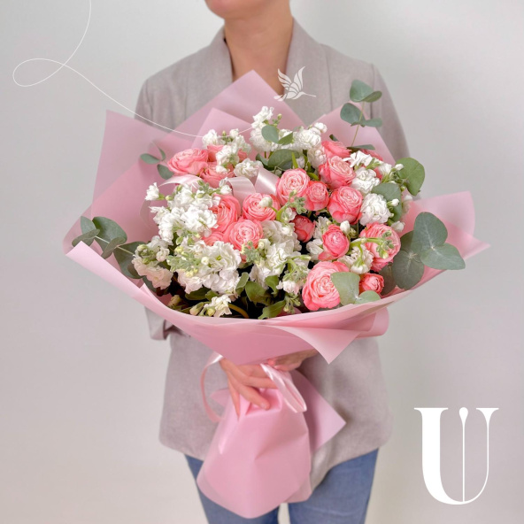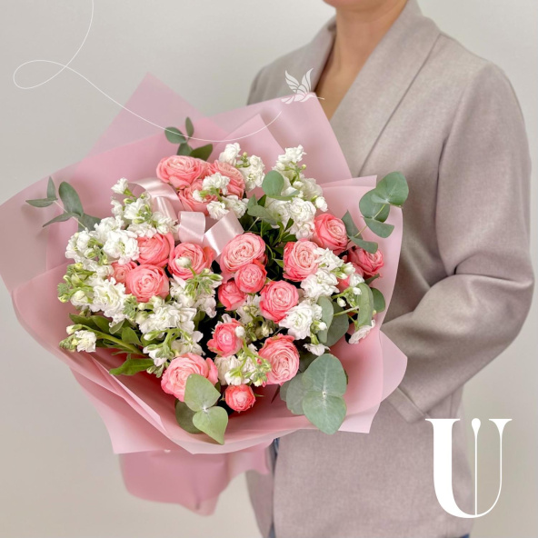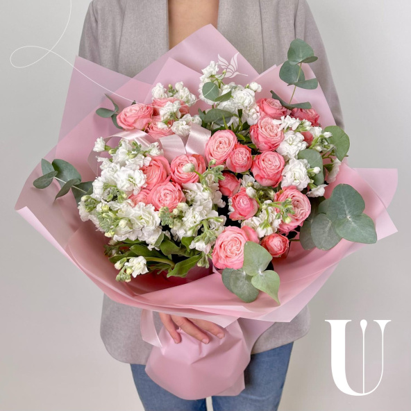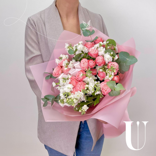 - Роза кустовая пионовидная, Бомбастик, нежно-розовая, 50 см. - 5 шт