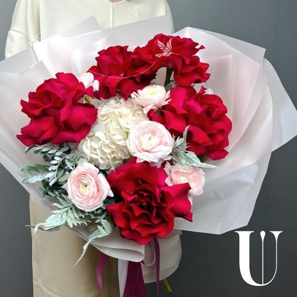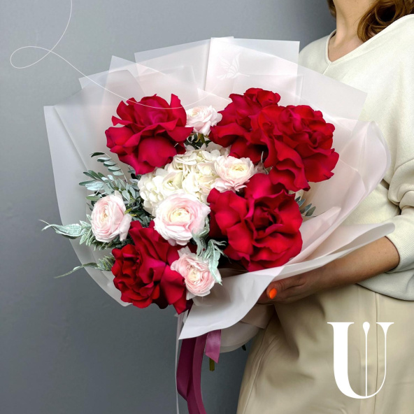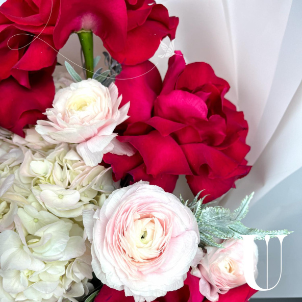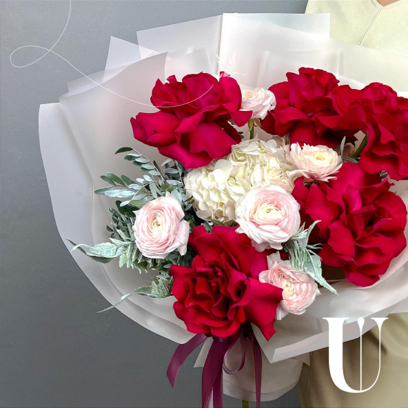 Стильный и завораживающий своим очарованием букет из Эквадорских роз и ранункулюсов не оставит равнодушным ни одного получателя.