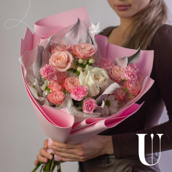 - Роза кустовая пионовидная, Бомбастик, пудровая - 2 шт