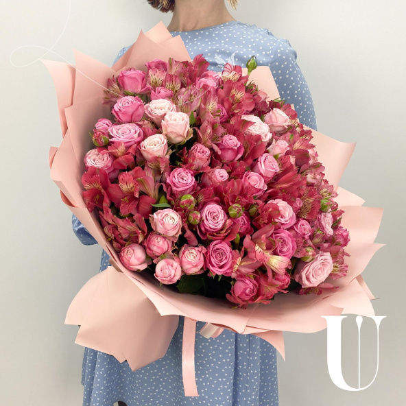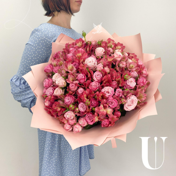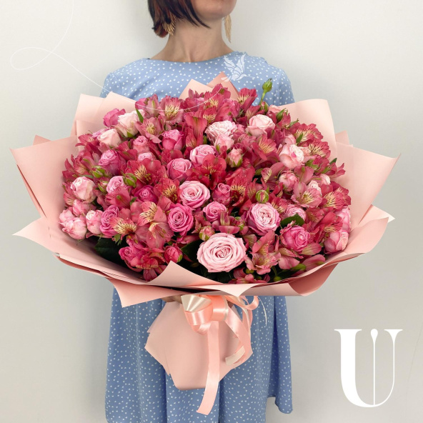 - Роза кустовая пионовидная, Бомбастик, розовая, 60 см. - 20 шт