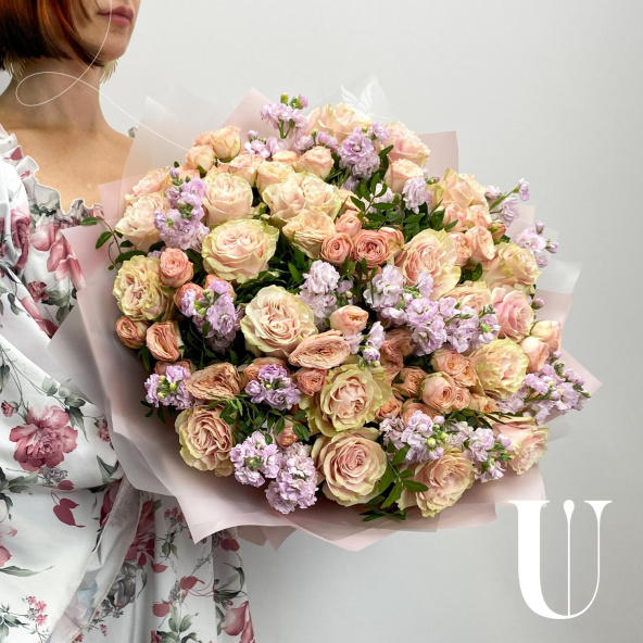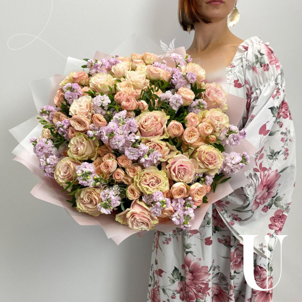 - Роза кустовая пионовидная, Бомбастик, нежно-розовая, 50 см. - 10 шт