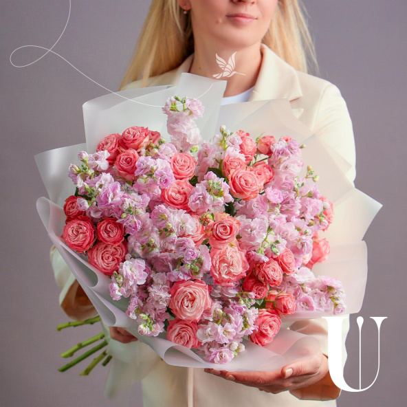 - Роза кустовая пионовидная, Бомбастик, нежно-розовая, 50 см. - 10 шт