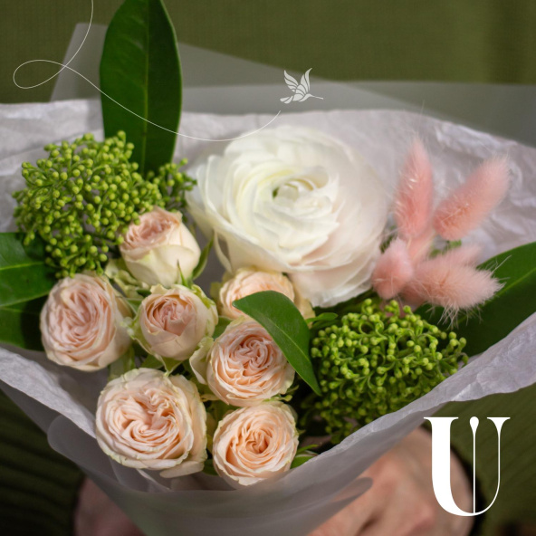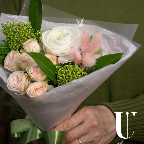 - Роза кустовая, розовая, 50 см. - 1 шт