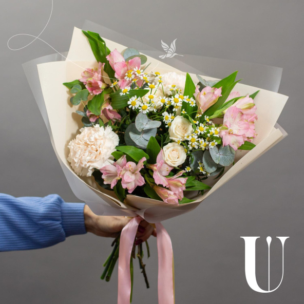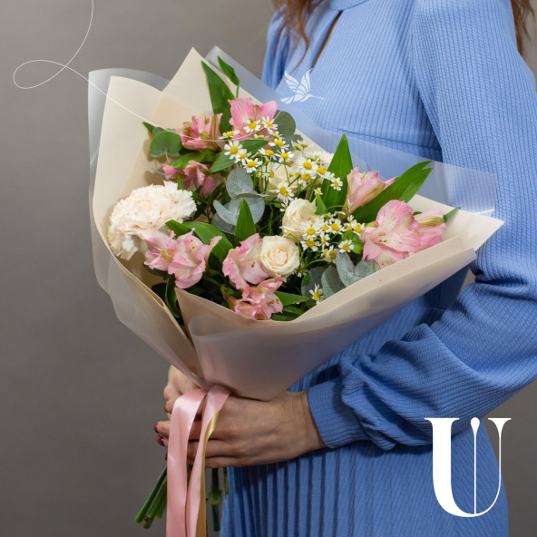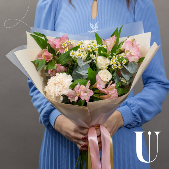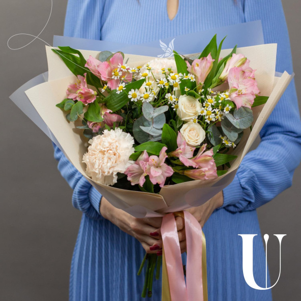 - Роза кустовая пионовидная, Бомбастик, пудровая - 1 шт