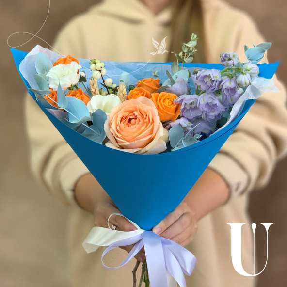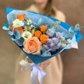 - Роза кустовая, оранжевая, 40 см. - 2 шт