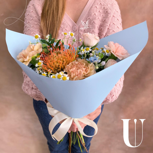 - Роза кустовая пионовидная, Бомбастик, нежно-розовая, 50 см. - 1 шт