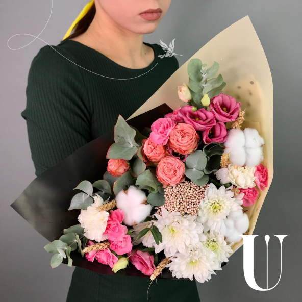 - Роза кустовая пионовидная, Бомбастик, розовая, 60 см. - 1 шт